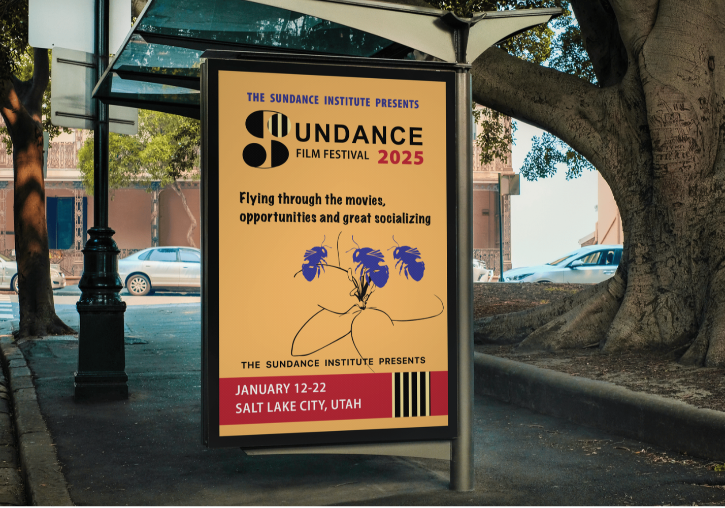 I explored both vibrant and soft color palettes but chose a softer one to create a calm, welcoming, and elegant tone that fits the natural bee and flower theme. I used clean shapes, balanced composition, clear typography, and strong scale to guide the viewer’s eye and highlight important information. Designed in Adobe Illustrator, the final piece is simple yet meaningful, visually engaging, and reflective of Sundance’s creative energy.